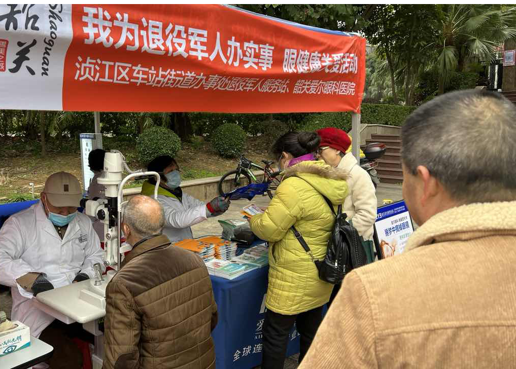 為了落實(shí)新時(shí)代衛(wèi)生健康政策,弘揚(yáng)新時(shí)代醫(yī)療衛(wèi)生職業(yè)精神,同時(shí)體現(xiàn)對(duì)退役軍人和其他優(yōu)撫對(duì)象的親切關(guān)懷,2021年12月28日上午,韶關(guān)愛(ài)爾眼科醫(yī)院聯(lián)合湞江區(qū)車(chē)站街道退役軍人服務(wù)站在森林官邸小區(qū)前的廣場(chǎng)開(kāi)展“我為退役軍人辦實(shí)事 眼健康關(guān)愛(ài)活動(dòng)”,為廣大退役軍人和其他優(yōu)撫對(duì)象、社區(qū)群眾提供健康咨詢,對(duì)需要進(jìn)行白內(nèi)障手術(shù)治療的退役軍人和其他優(yōu)撫對(duì)象實(shí)行免費(fèi)檢查,以實(shí)際行動(dòng)貫徹落實(shí)習(xí)近平總書(shū)記關(guān)于退役軍人工作的重要指示精神。