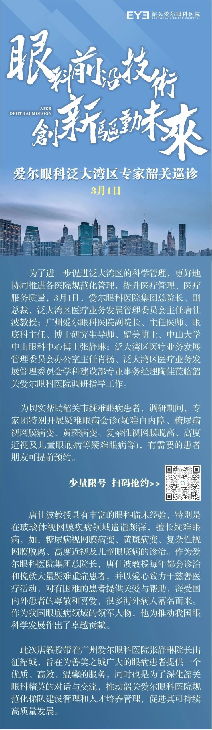 愛爾總院長唐仕波帶隊巡診韶關(guān),3月1日家門口看疑難眼底病專家號,少量限號速約!